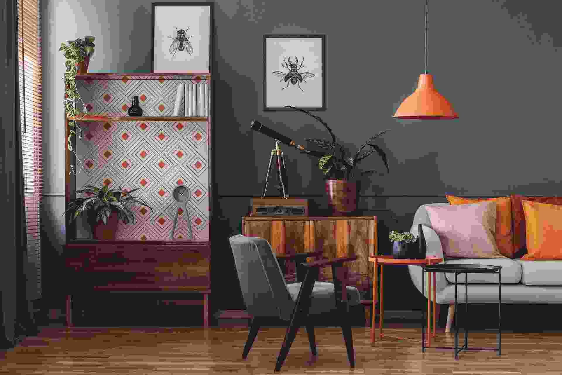 Contemporary style built-in desk dark wood floor and brown floor study room.
